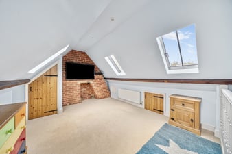 4 x velux windows. Exposed brick chimney breast. Radiator,
