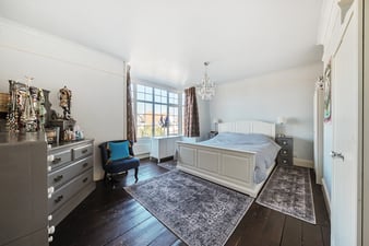 Large bay window to front. Wooden floorboards. Dado rail. Radiator.