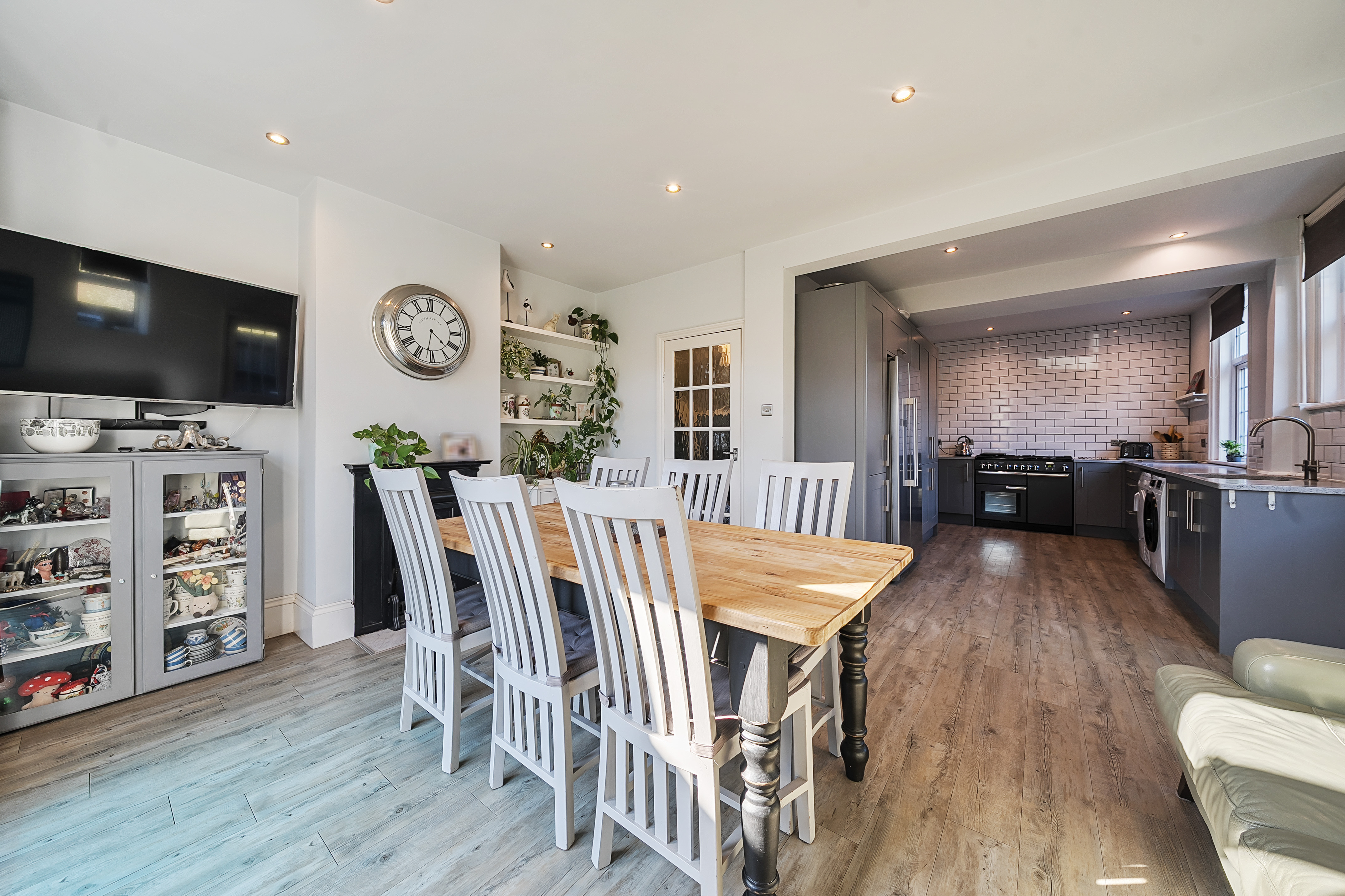 *PRICE RANGE £725,000 - £750,000**FANTASTIC FAMILY ACCOMMODATION* A beautifully appointed very spacious bay fronted FIVE BEDROOM semi-detached period home on three levels, situated in a very popular residential area, walking distance to the railway station and many well respected local Grammar and Comprehensive Schools. This very majestic looking property sits comfortably on a corner plot with two generous parking spaces to the rear and it boasts well manicured and well established rear gardens. The well proportioned accommodation is spread generously over three floors with each room oozing an abundance of natural light as a result of the many windows throughout. The owners have created a clever combination of period and contemporary charm. The property has been adapted to the rear to offer a delightful 'open plan' kitchen/dining room overlooking the pretty rear gardens. On the ground floor there is a kitchen with a dining area and a living room, there are three good sized bedrooms (one ensuite) and a family bathroom on the first floor, and the second floor comprises two further double bedrooms and an additional bathroom. The well screened and well established pretty rear garden is approximately 100' in length with a gated access to both the front and the rear leading onto two large off road parking places. Gas central heating. Double glazed throughout.