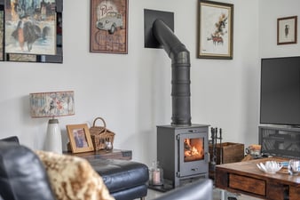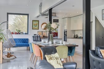One set of triple bifold doors and one set of double doors to rear and side garden. An attractive wood burning stove on slate hearth. Continuation of polished concrete 'under floor heating'.