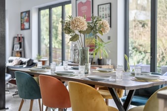 Large dining area overlooking rear garden.